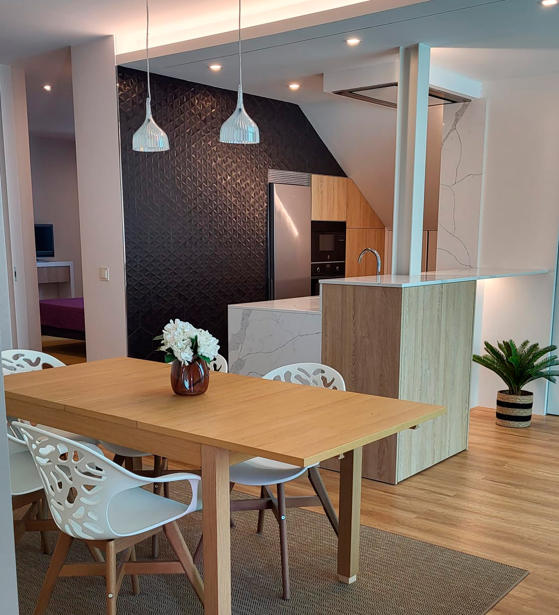 Aqui intervém o nosso design de interiores, a idealizar o seu novo espaço ou reformular o existente, projectando o em 2D e 3D levando em conta quais os melhores materiais a aplicar em conformidade com as suas classes de aplicação para eleminar assim problemas e manutenções futuras que não estejam calculadas.